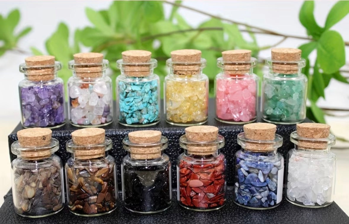 A kristályok ebben a formában kifejezetten alkalmasak személyes szándékok megerősítésére. Használhatók rituálék során, gyertyamunkához, tasakokhoz, oltárra helyezve vagy meditáció közben. Minden egyes üveg egy fókuszpont, amely segít a figyelmet tisztán tartani és az energiát irányban tartani.