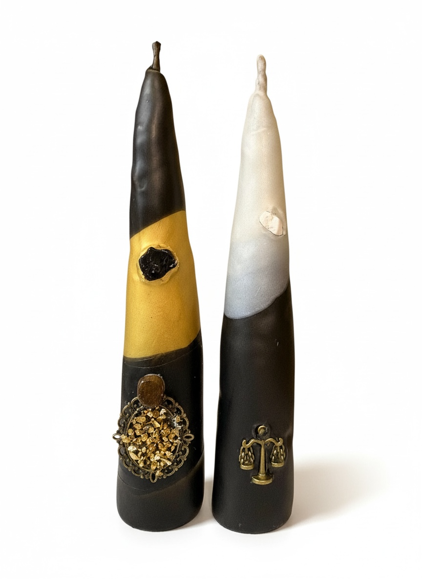 ✨ Ez a gyertya a láthatatlan bíró, amely helyreállítja a rendet, és emlékeztet arra, hogy minden tett visszhangja visszatér.